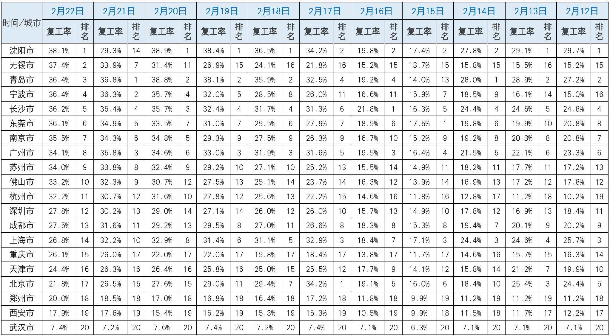 全球范圍內(nèi)復(fù)工指數(shù)的對比和分析